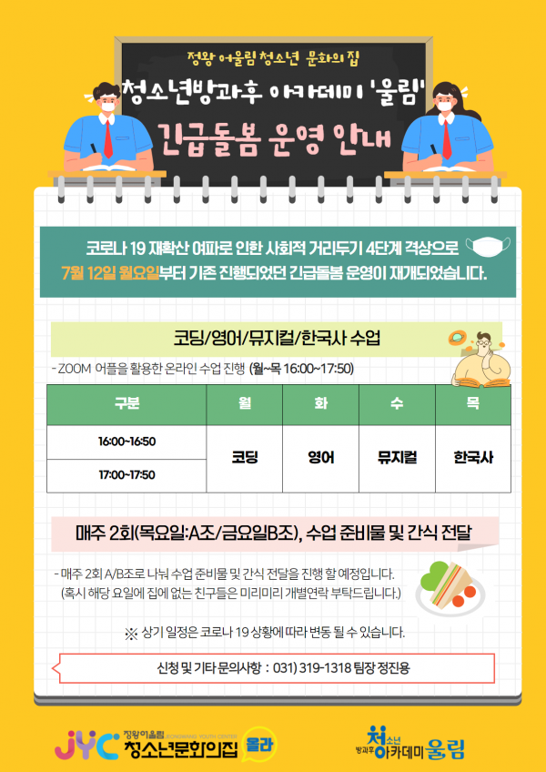 [청소년방과후아카데미] 7월 긴급돌봄 운영 안내